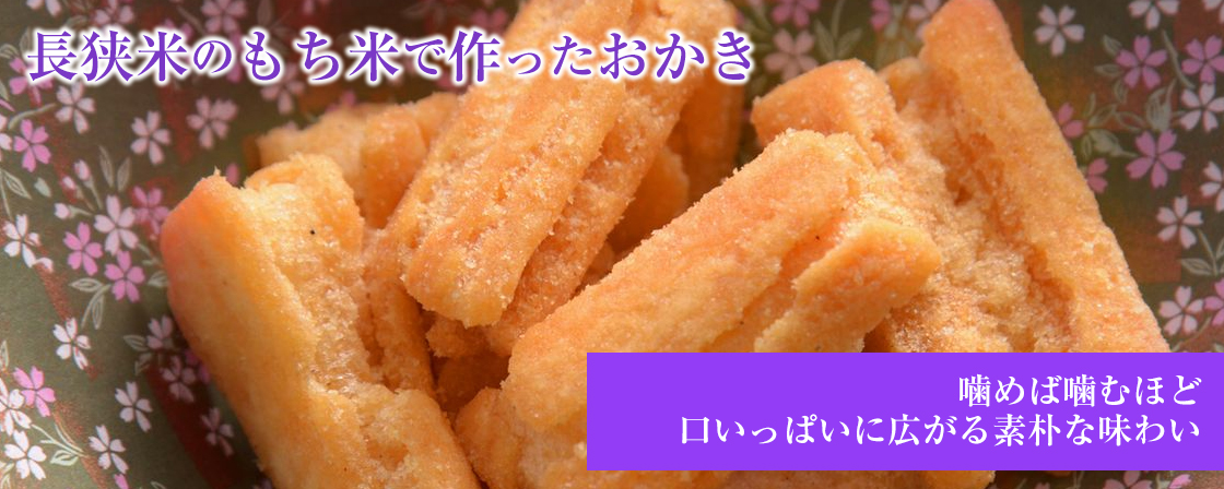 千葉の長狭平野の地で育まれた長狭米で作ったおかき・おせんべいを販売しています。