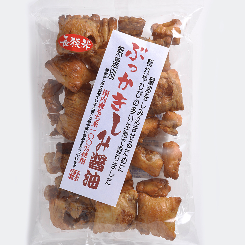 醤油をしみ込ませるために、割れやヒビの多い生地で造りました。 その生地を焼き上げ、醤油をしみ込ませました。 内容量:100g