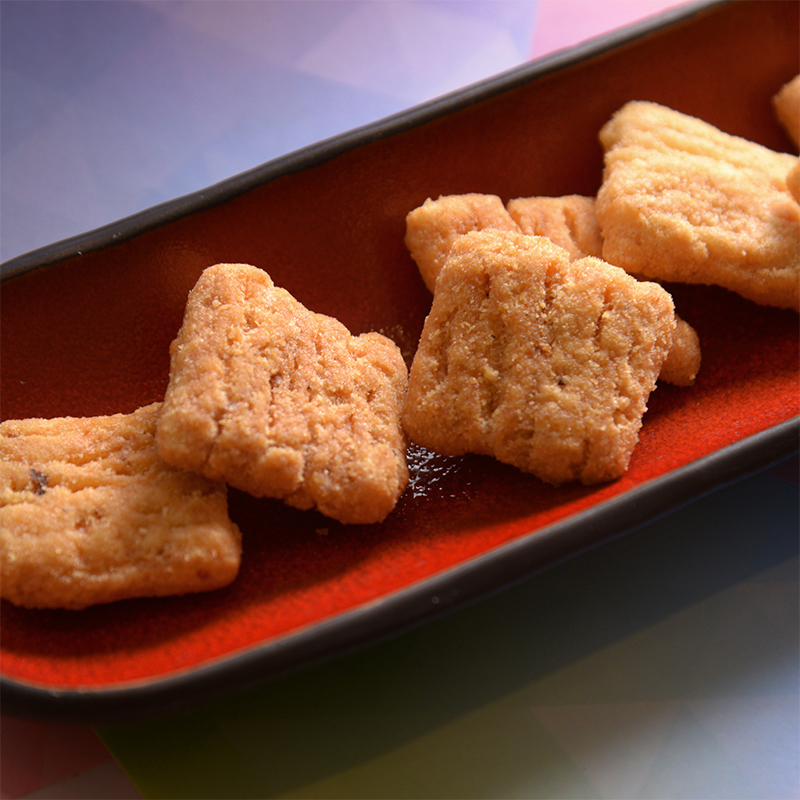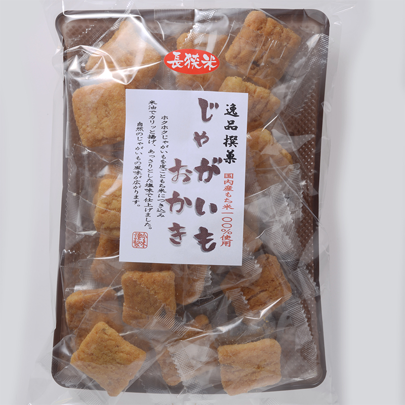 ホクホクに蒸したじゃがいもを皮ごともち米につき込み、米油でカリッと揚げ、あっさりとした塩味で仕上げました。