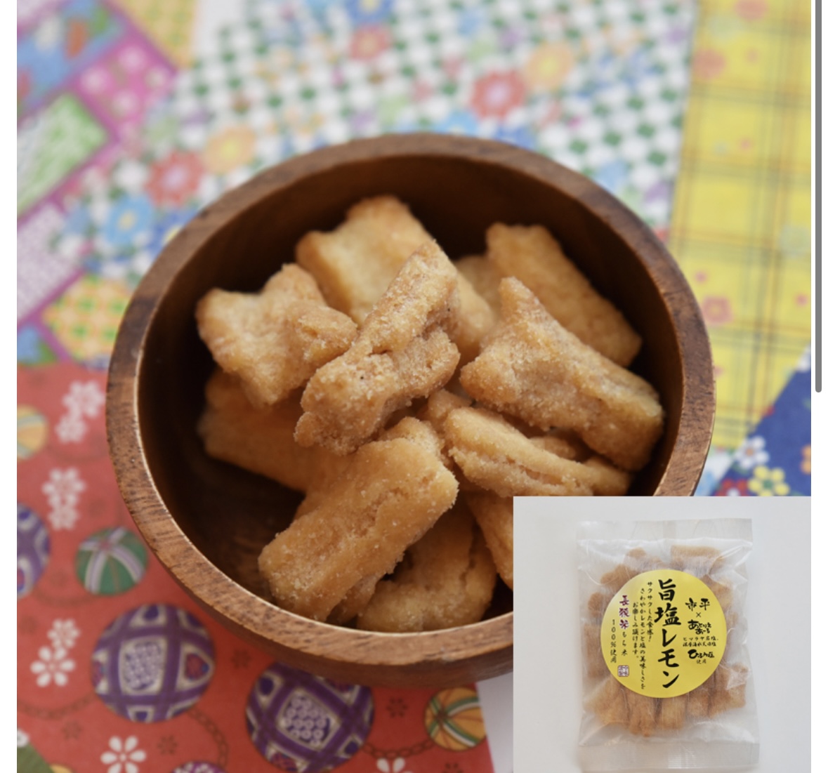 サクサクした食感! さわやかレモンと塩の美味しさをお楽しみ頂けます。 ヒマラヤ岩塩・深層海水天日塩・ひふみ塩使用。 長狭米もち米100%使用。 「あとりえあーる」とのコラボ商品です。 80g:和紙袋タイプ 100g:ビニール袋タイプ