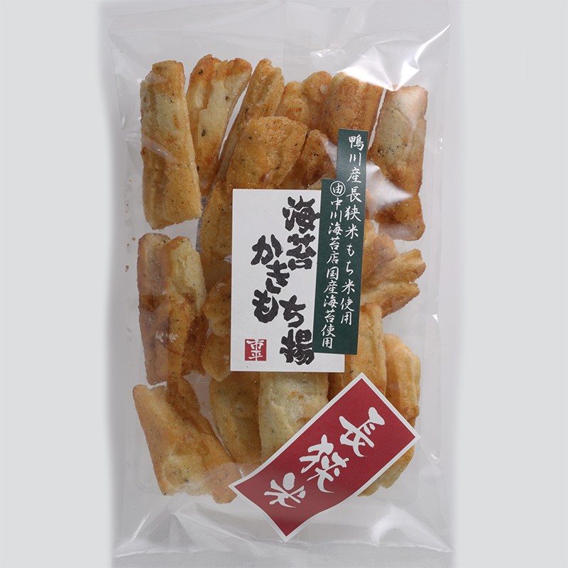 国産の香り豊かな海苔を使用した揚げ餅です。袋を開けたとたん、海苔の豊かな香りが広がります。